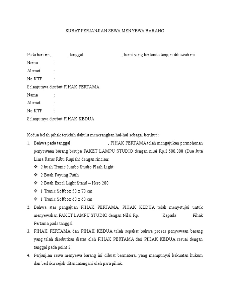 Surat Perjanjian Sewa Menyewa Barang Pdf